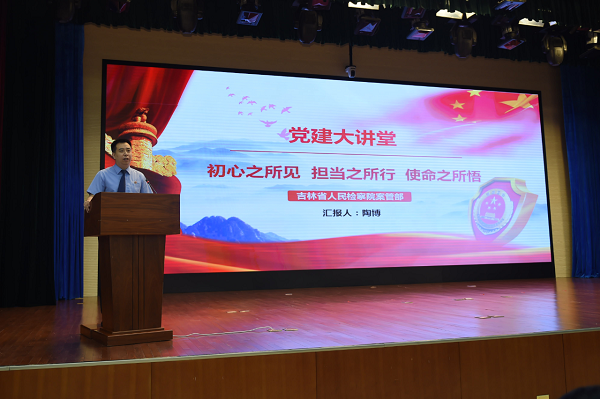 省检察院副厅级以上领导及全体检察人员,驻省检察院纪检监察组全体同志在主会场参加本期党建大讲堂。长春林区分院、延边林区分院、铁路运输两级院、赉宁地区检察院、检察官学院全体干警在分会场以视频方式观看大讲堂。