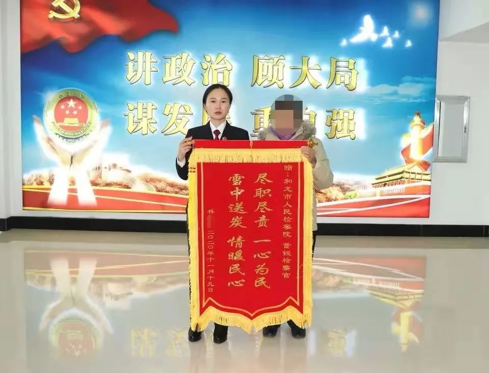 2020年11月,申请监督人林某向董锐赠送锦旗,感谢检察官为其找回土地,促进行政争议实质性化解