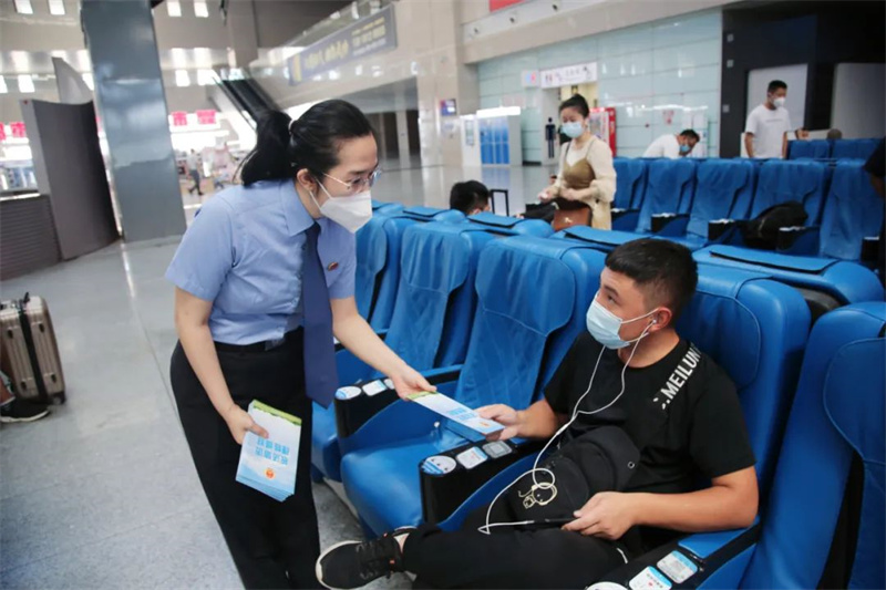 座谈会后,长春铁路运输检察院干警分别来到长春站、长春西站候车室向候车旅客发放宣传册。宣传册以“依法信访、理性维权”为主题,内容丰富、图文并茂、通俗易懂。有的旅客在拿到宣传手册后认真阅读,有的旅客还向检察官提出生活中遇到的一些法律问题,干警都一一作出解答。
